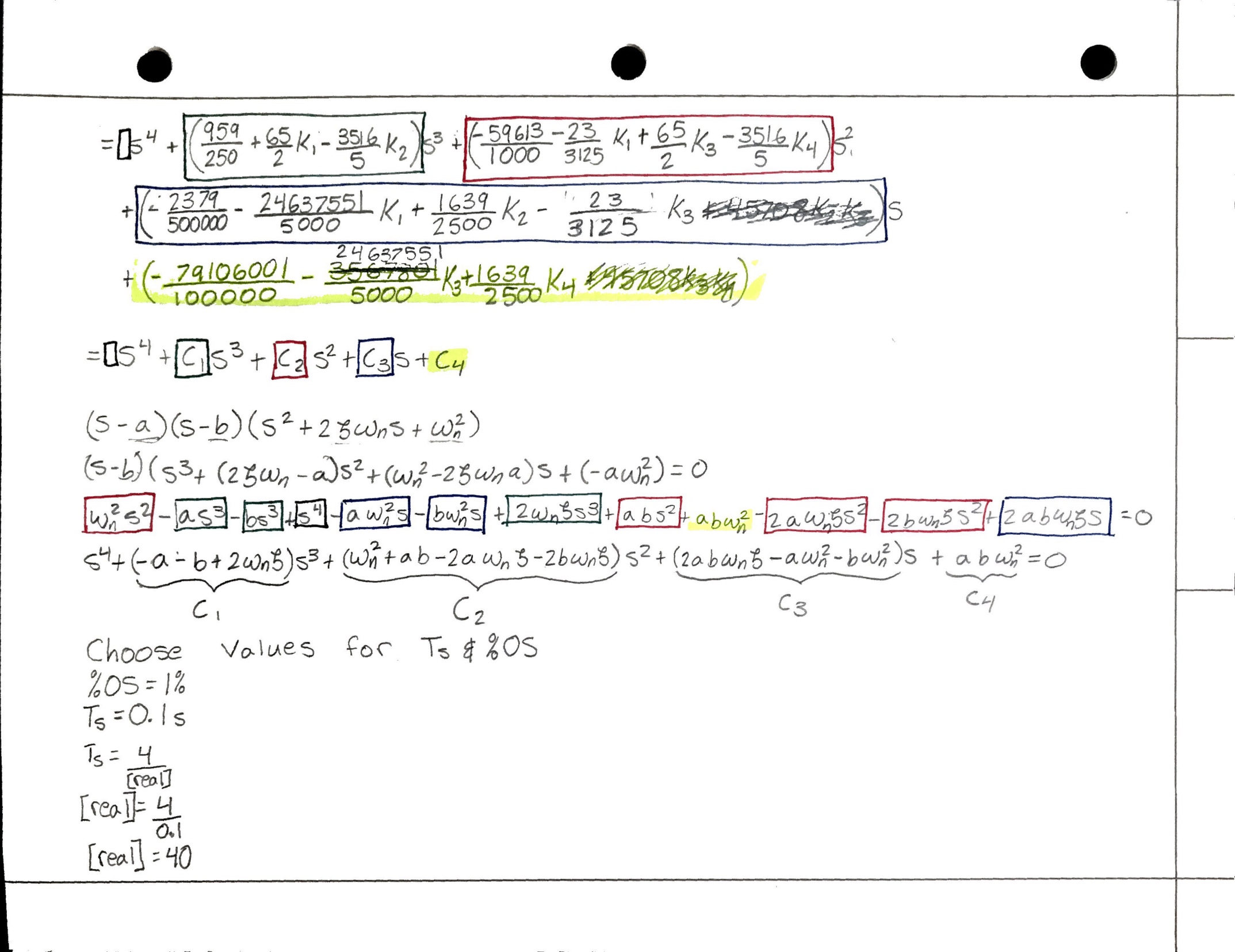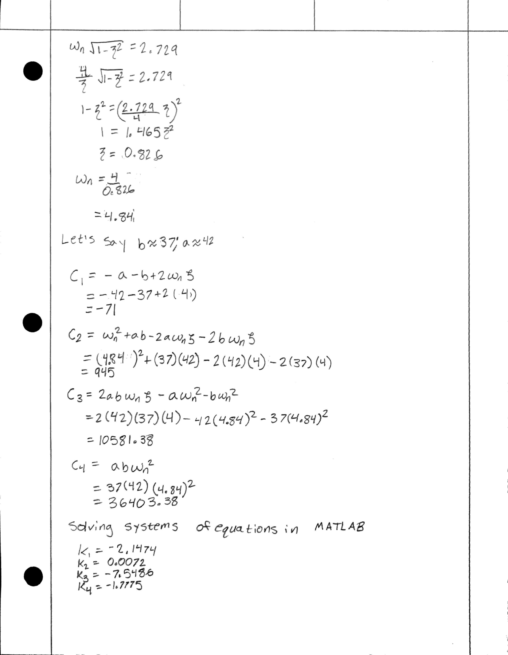 Calculations for the gains done mostly by hand, some parts in MATLAB