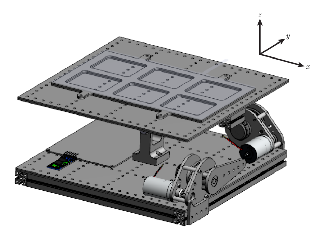 However, we are proud to say that we did end up figuring out how to apply the gain value method that we learned in class to our project. In a classic "learn by doing" scenario we frankly didn't fully understand it unitl we tried it... multiple times. As far as the gains go, we learned that the ones we produced from hand calculations were far lower than what was required to properly contol the table. With some tuning we were able to smoothen the leveling process. We think this had to do with the friction present in the physical system being much higher than that assumed in our calculations. We shot for a settling time of 1 second and a percent overshoot of 1%. Aspirational goals give the state of our system, we unsuprisingly were incapable of achieving them. The greatest improvements we could make to the system to achieve the desired response would include tightening the belts and reducing the friction between the belts and their gaurds.